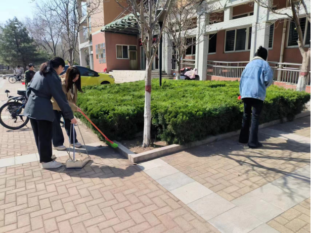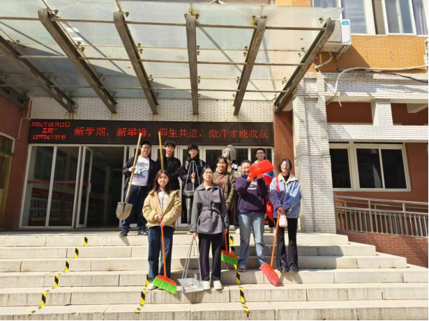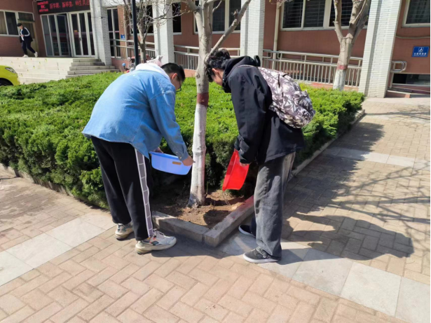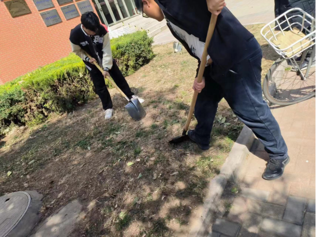 活动举办当天,首先,学长为志愿者们进行了环保宣传和绿化知识的讲解,随后大家带着铁锹、水桶等工具开始完成各自的任务。大家分工明确,干劲十足。一共分为三组:一组负责提桶给楼前的花草树木浇水;一组负责清除杂草和松土;另外一组负责打扫遗留的垃圾,保持环境的整洁。虽然正逢中午阳光炽热,但大家的热情分毫不减,现场的气氛热烈而融洽,各个小组都团结协作,互相帮助并乐在其中。最终在志愿者们的共同努力下,学院楼前的花草树木被打理的井井有条,呈现出一片生机盎然的景象。