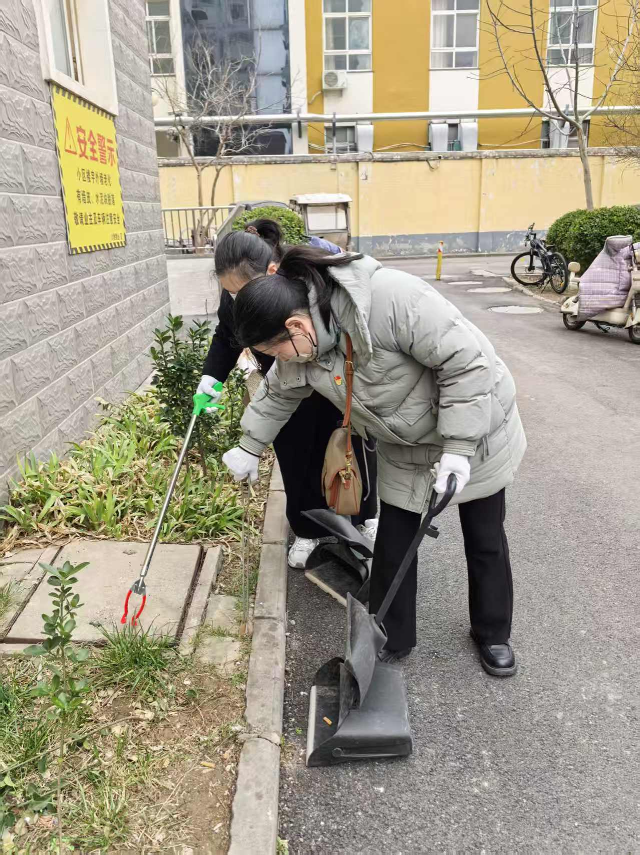 活动中,大家拿起扫帚、簸箕、夹子等清洁工具,重点针对小区道路边沟、花坛草丛等卫生“死角”进行全面清理,仔细清除路面缝隙烟头等碎小垃圾,清扫散落落叶与杂物,将乱停乱放的自行车、电动车逐一规范摆放,以实际行动改善社区卫生状况,营造干净整洁、文明有序的居住环境。